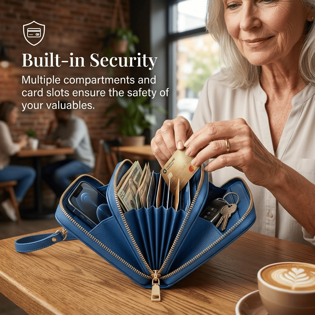 Carry Your Essentials Without the Bulk Smartly layered compartments and secure anti-drop zippers keep your phone, cards, and cash perfectly organized and safe from theft.